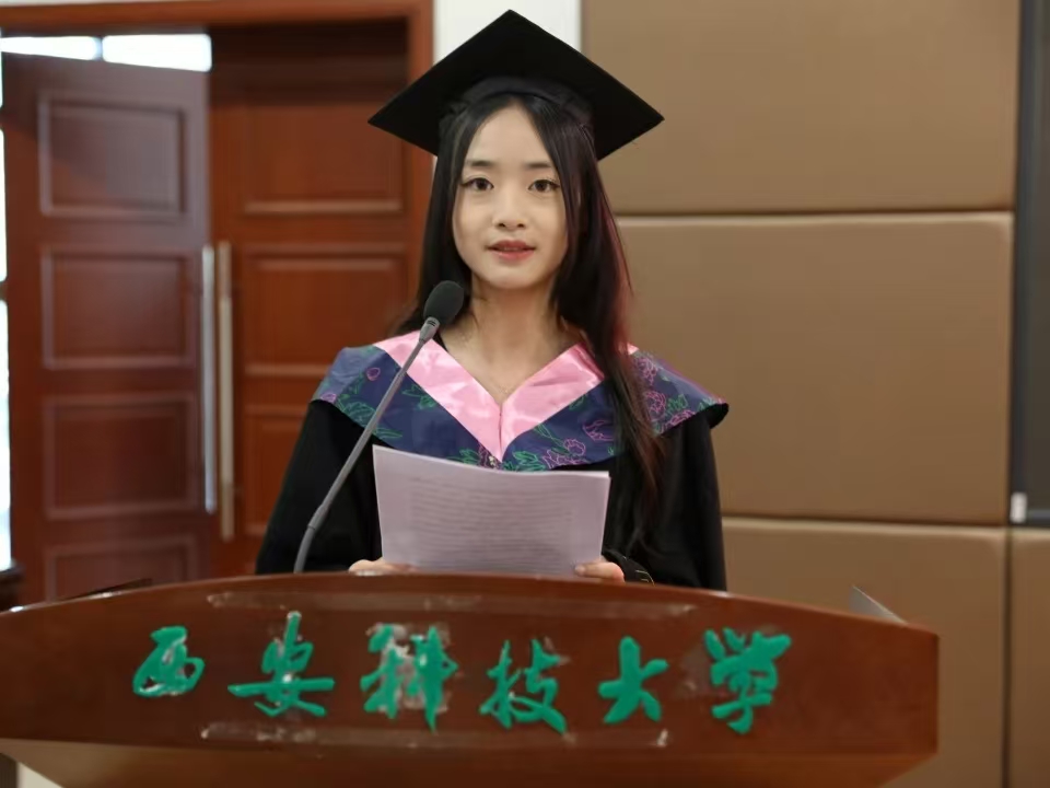 毕业生代表杨博婷分享了自己四年求学历程,代表全体毕业生表达了对母校由衷地祝愿和对老师衷心地感激。她表示,这段求学经历必将成为全体毕业生一生的财富,将永远激励大家砥砺前进,书写人生新的辉煌。