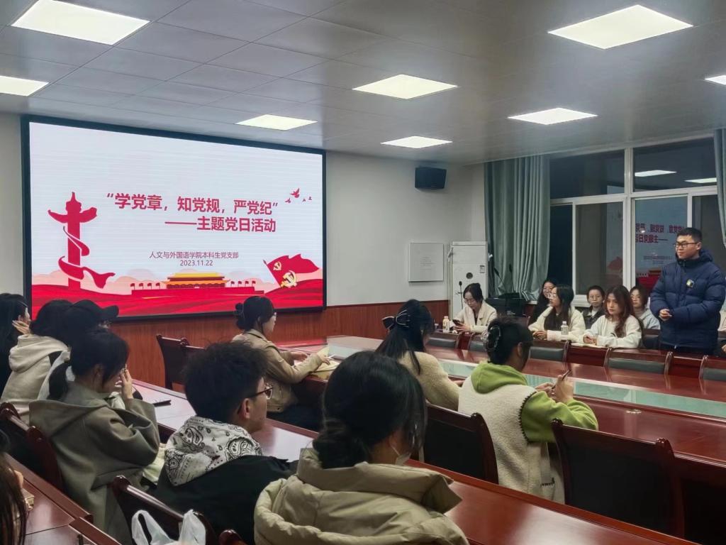 为深入开展学习贯彻习近平新时代中国特色社会主义思想主题教育,2023年11月22日澳门正规电子游戏平台本科生党支部开展“学党章 知党规 严党纪”主题党日活动,支部全体党员参加。