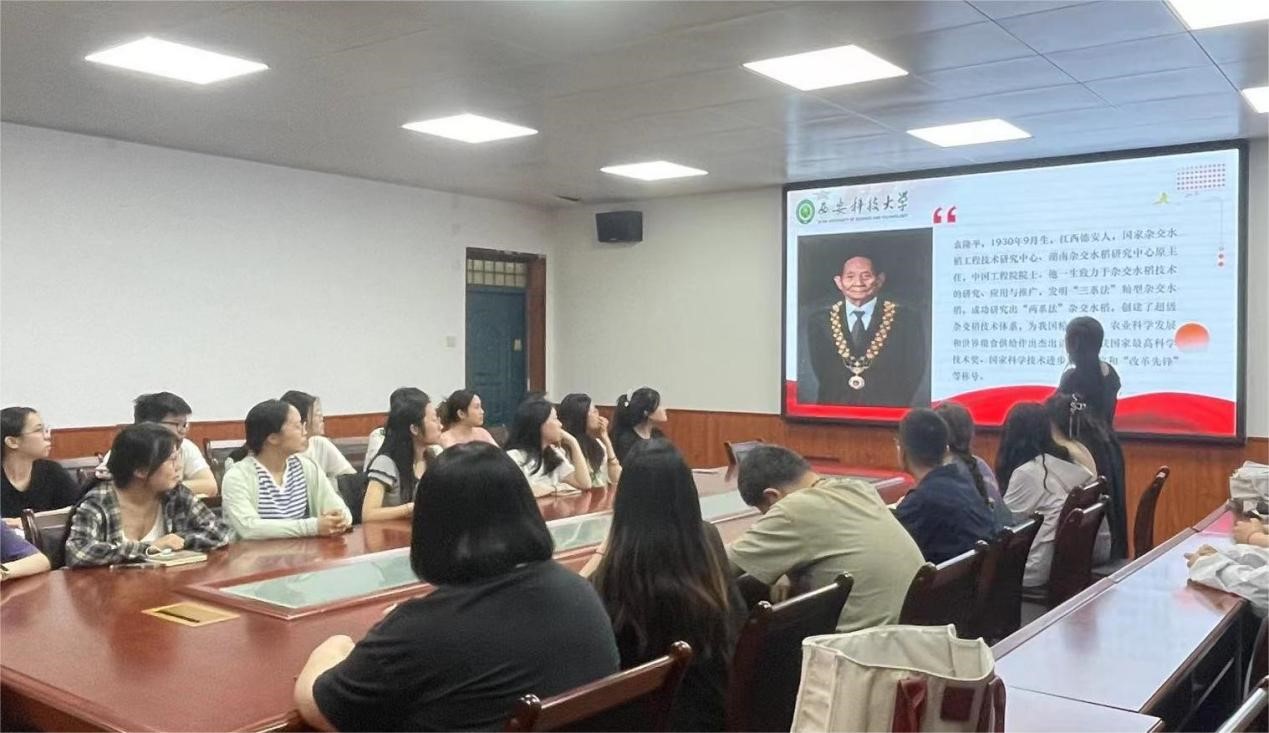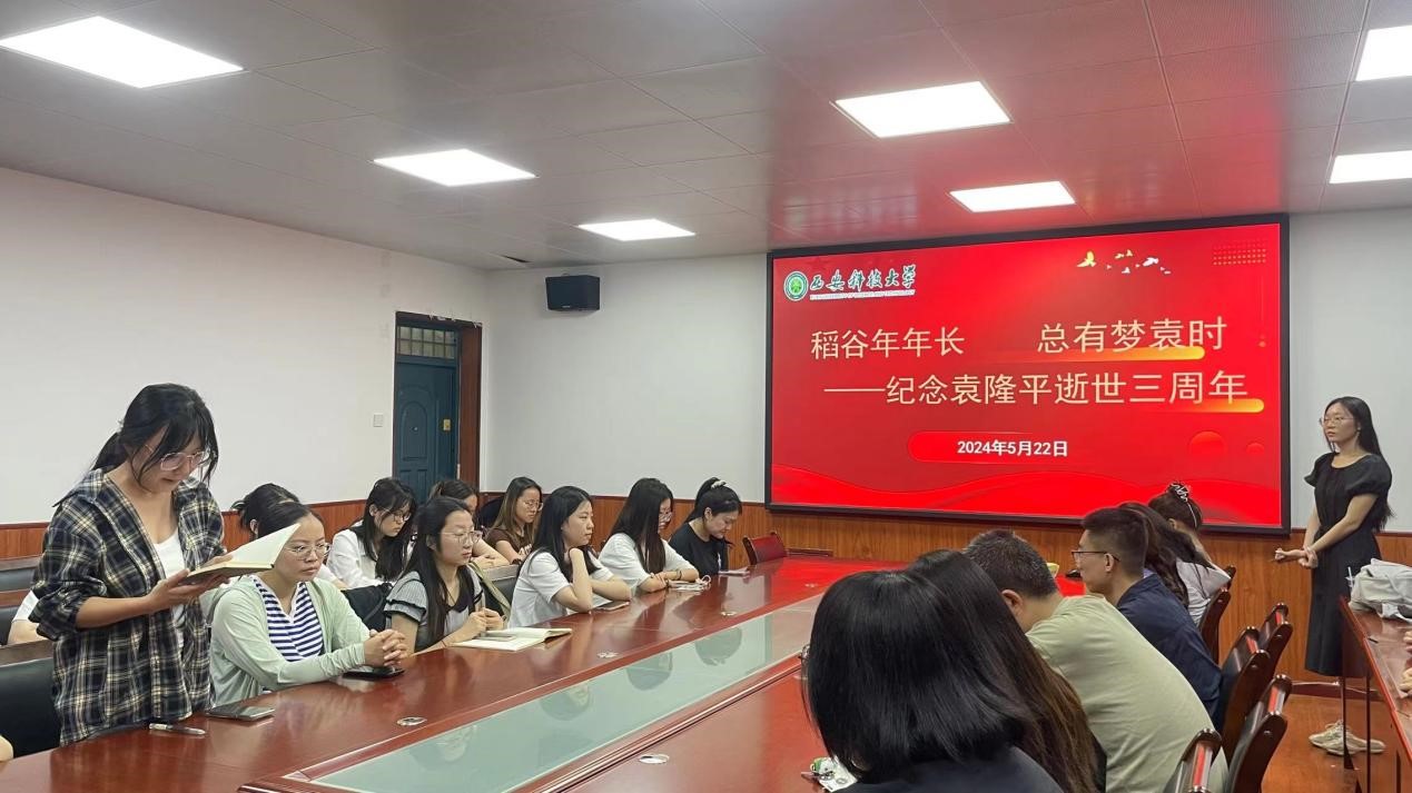 5月22日上午,澳门正规电子游戏平台研究生党支部在骊山校园2教226会议室开展“稻谷年年长,总有梦袁时”纪念袁隆平逝世三周年主题党日活动,支部在校党员、2023级全体研究生参加了活动,会议由2023级研究生班长杨皓月主持。