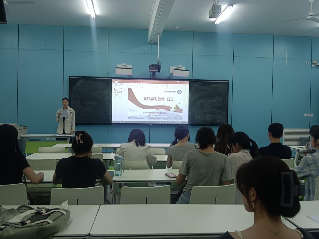 为深入学习贯彻习近平总书记关于党纪学习教育的重要讲话和重要指示精神,5月22日,人外学院本科生党支部于骊山校园三号教学楼205教室开展党纪学习教育观影主题党日活动,支部全体党员、入党积极分子代表共计70余人参加,会议由支部书记李银亮主持。