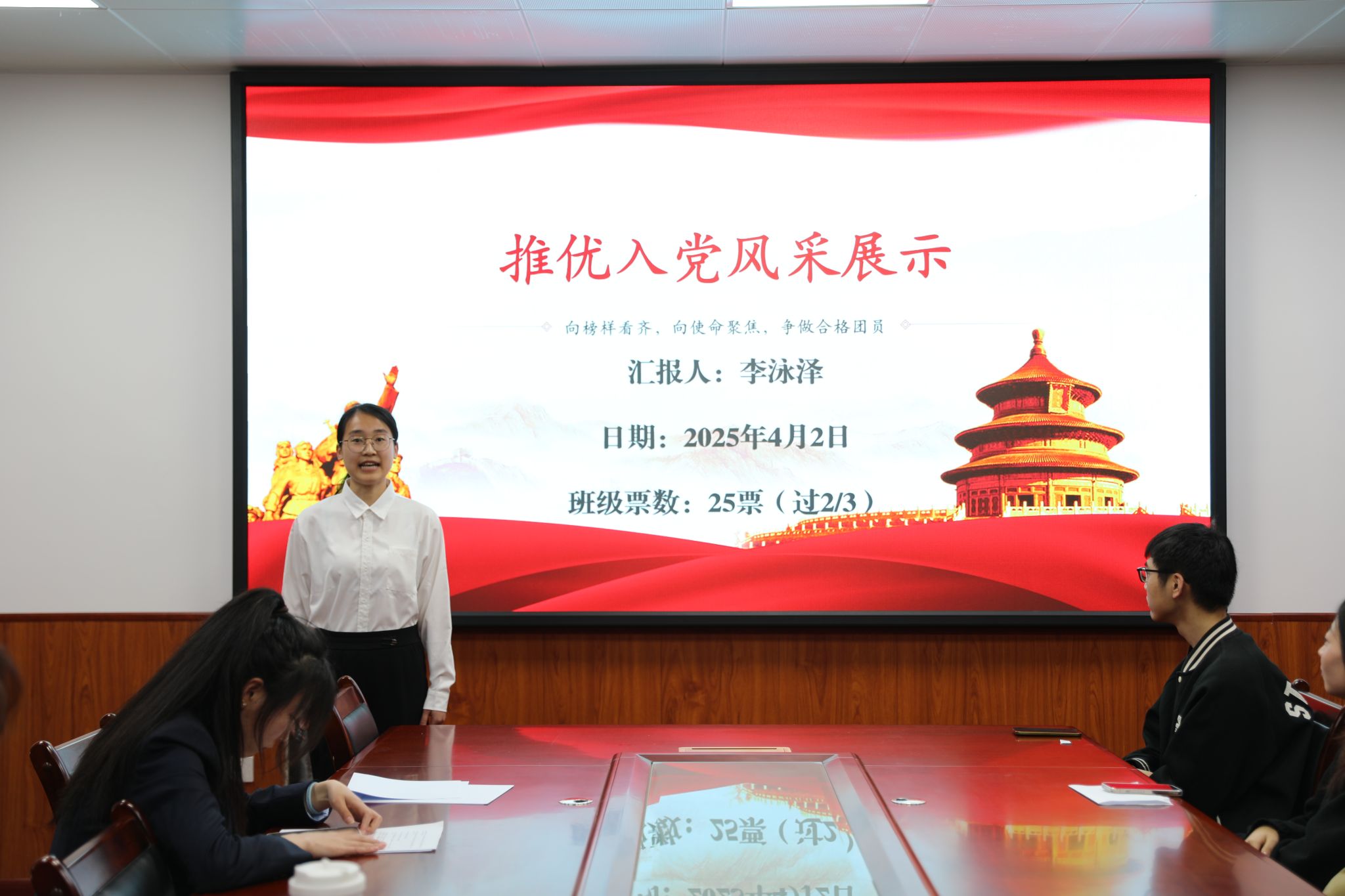 为深入学习宣传贯彻习近平新时代中国特色社会主义思想和党的二十大精神,充分展示入党积极分子先进性,4月2日,澳门正规电子游戏平台党支部在骊山校园二号教学楼226会议室举办入党积极分子风采展,本科生党员代表、入党积极分子代表、学生代表等共计50余人参加。