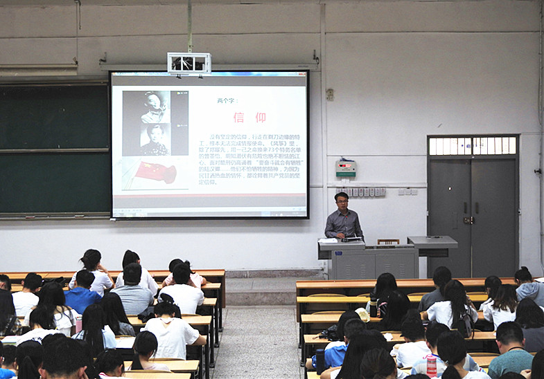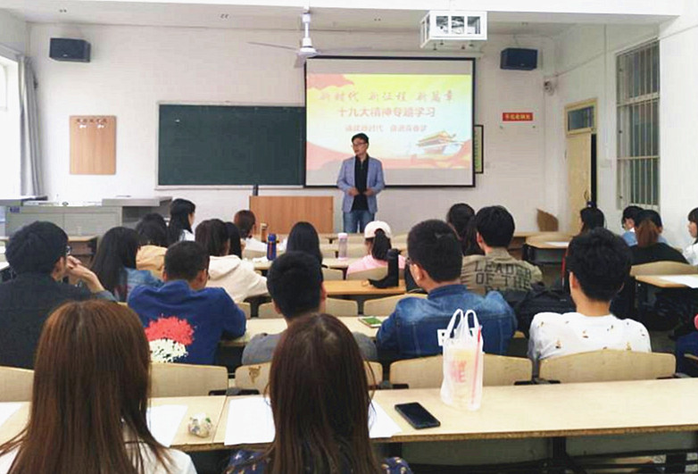 5月2日、3日,学院党委副书记张振中分两次为全院学生作了题为“人生有信仰、未来有希望”的十九大精神专题党课,介绍了十九大召开的背景和盛况,对习近平新时代中国特色社会主义思想思想和十九大报告进行了解读,并以谍战剧《风筝》中长期潜伏的共产党情报员郑耀先坚守信仰的故事为例强调了信仰的必要性和重要性,指出了理想信念对实现人生价值和推进社会发展的重要意义。“高校是立德树人、培养中国特色社会主义事业建设者和接班人的重要阵地,大学生作为高校的主体、作为未来建设社会主义现代化强国的中坚力量,有责任、有义务去学习、传播十九大精神。”他号召全体学生要进一步坚定共产主义信仰,坚定跟党走的信心和决心,要树立远大理想,牢记历史使命,勇担时代重任,不断提升自我,把学习成果转化为推进自身发展的强大动力,在实现中国梦的伟大实践中放飞青春梦想、实现人生价值,以新气象、新作为向新时代献礼。
