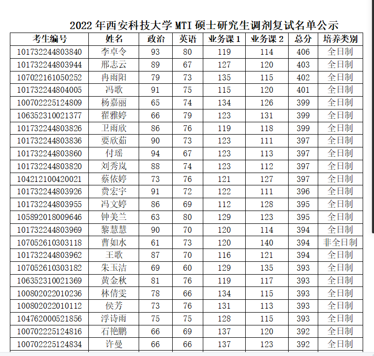 2022年澳门正规电子游戏平台MTI硕士研究生调剂复试名单公示