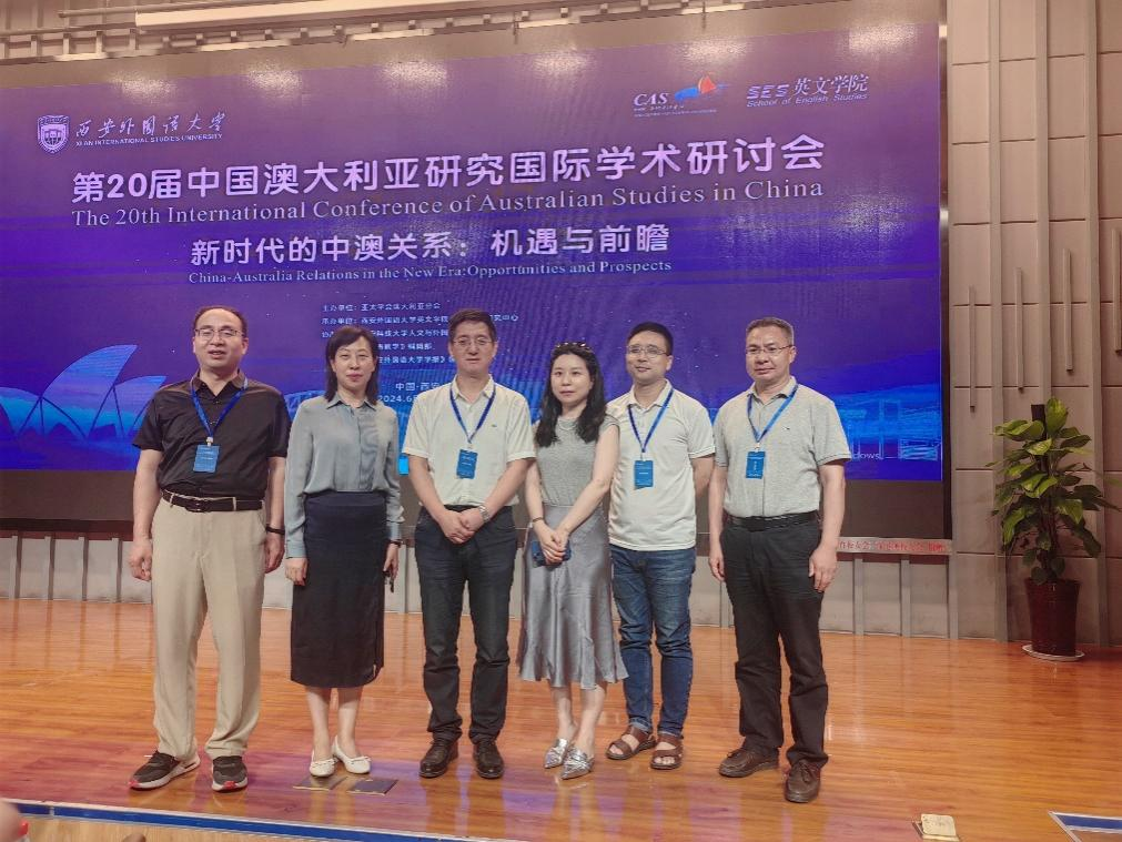 6月8日至9日,由中国亚太学会澳大利亚分会主办、西安外国语大学英文学院和澳大利亚研究中心承办、澳门正规电子游戏平台协办的“第20届中国澳大利亚研究国际学术会议”在西安外国语大学长安校区隆重召开,本次会议主题为“新时代的中澳关系:机遇与前瞻”。来自自清华大学、北京外国语大学、华东师范大学、中山大学、山东大学等中国知名高校,以及澳大利亚国立大学、悉尼大学、新南威尔士大学、格里菲斯大学等世界知名高校及研究机构的120余位专家学者齐聚一堂,共促学术发展。本次会议邀请了5位国内外专家作主旨报告,此外还设有7个分论坛,分别就政治、经济、文学、文化、媒体、语言、教育等领域的热点话题进行交流研讨。澳门正规电子游戏平台王新平院长带领时健、高宝萍、席东、张军锋、秦声等5位老师出席会议。王新平院长用英汉双语主持了第一场主旨发言,并与国内外同行进行交流沟通。