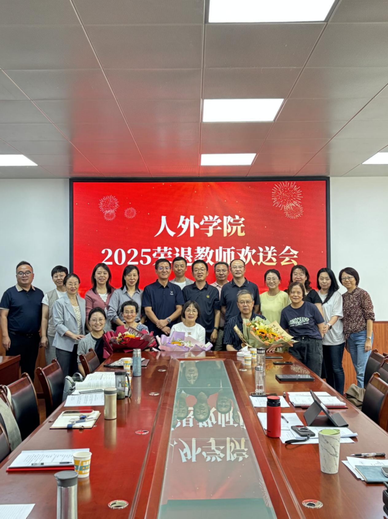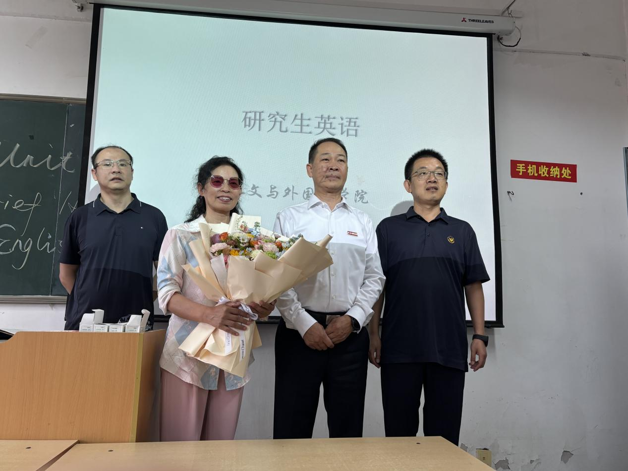 学院党委书记费秀水、院长代表学院感谢四位荣退教师为学院发展作出的突出贡献,向四位光荣退休的教职工致以敬意。感谢她们把敬业刻进年轮,把奉献融入血脉,是教育家精神在人外学院教师中的最好体现。他们表示退休不是终点,而是新的起点,学院永远是你们的家,欢迎常回来指导青年教师、参加校园活动,让教育家精神在‘传帮带’中延续。